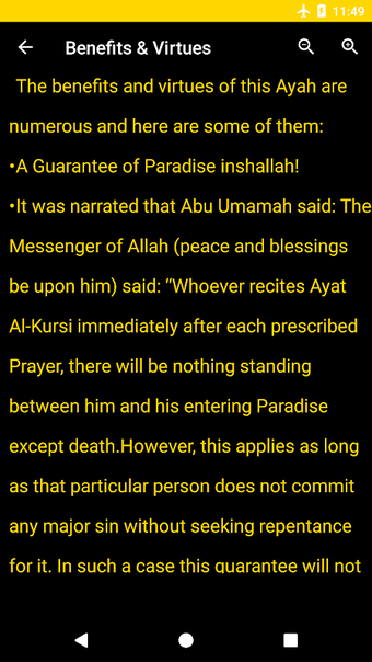 Ayatul Kursi — это бесплатное приложение для чтения Корана с большой коллекцией красивых декламаций Корана, лекций и тафсира. Это приложение разработано, чтобы быть простым, легким в использовании и совместимым с широким спектром устройств. Он предоставляет множество вариантов для выбора пользователями. Они могут слушать чтение Корана или смотреть лекции. Они также могут выбрать другой способ просмотра Корана.